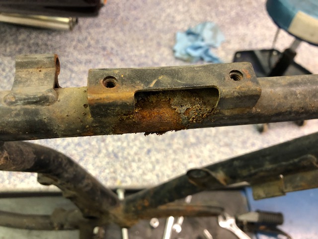 Instruments, cables, lights, switches - all in really poor shape. Fork tubes rust pitted. Front hub speed cable rusted in (and broke off).