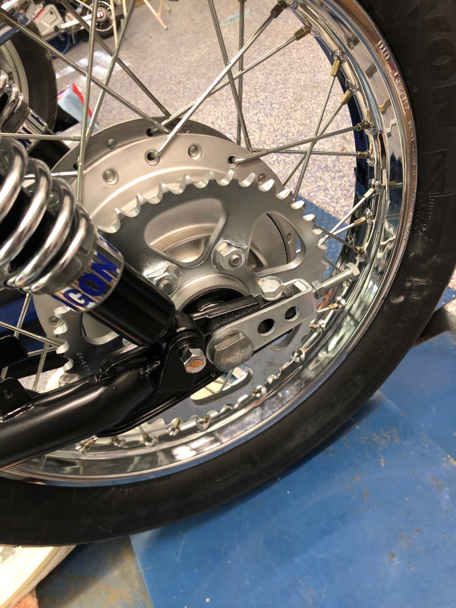 Some more progress. Rear wheel installed, I didn't torque anything yet (where I may take it apart again)