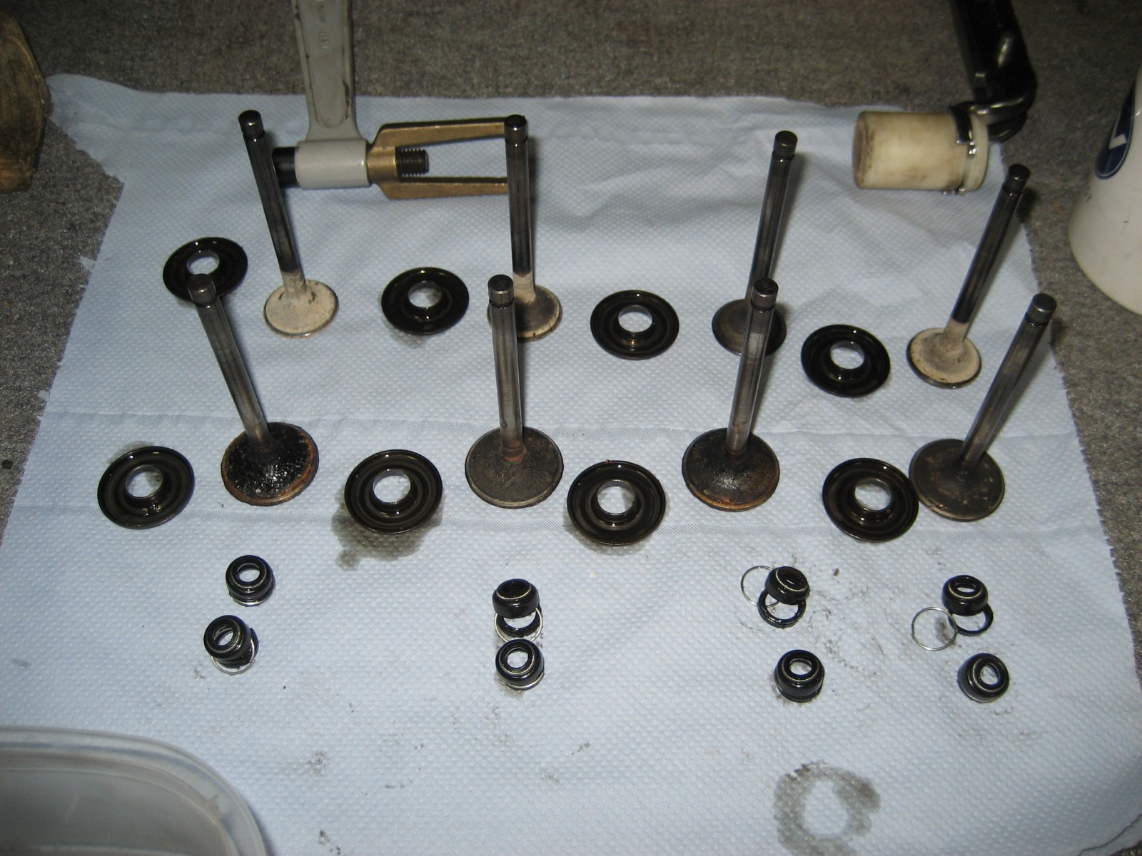 Yesterday I put some more time working on head. Took valves out, inspected a little. There is corrosion on guides and valves. Not working surfaces but still.