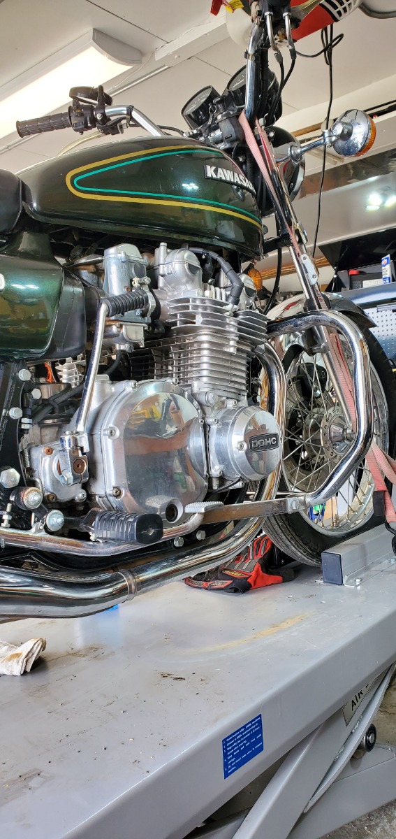 I've finished the rough draft on the bike and it starts, runs and stops. I’ve had a fairly decent learning curve so when I added fuel to it last night and it fired up instantly I was absolutely amazed, I’m still in shock. So far the only parts I've had to replace are the front brake master cylinder and the exhaust and I plan on doing my best to get that old master cylinder back on. I rebuilt the carburetors, front brake caliper, fuel petcock, replaced the exhaust, installed a new battery, put in new plugs and fluids and that’s it pretty much it. I took her for a spin around the block and got a little excited with the throttle and overestimated the brakes and almost skidded through my garage door. She’s still got the original tires so new rubber is required I’ve just got to find something period correct. When typing out what I’ve done it doesn’t seem like a lot but I’ve had a decent learning curve and it included reconfiguring the garage to work on bikes, so it was just enough. I've got to get it insured and take it for a spin so who knows what will happen after the first ride. I'm pretty excited and I've got to say she sure is pretty! This site has been vital so thanks!