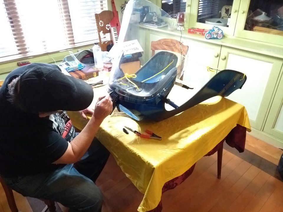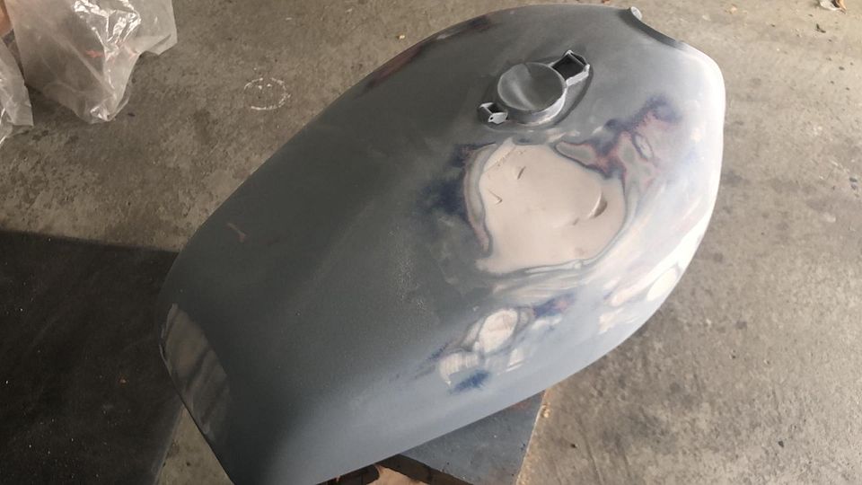 The painter sent me this picture of the bodywork being done on the gas tank I sent him;