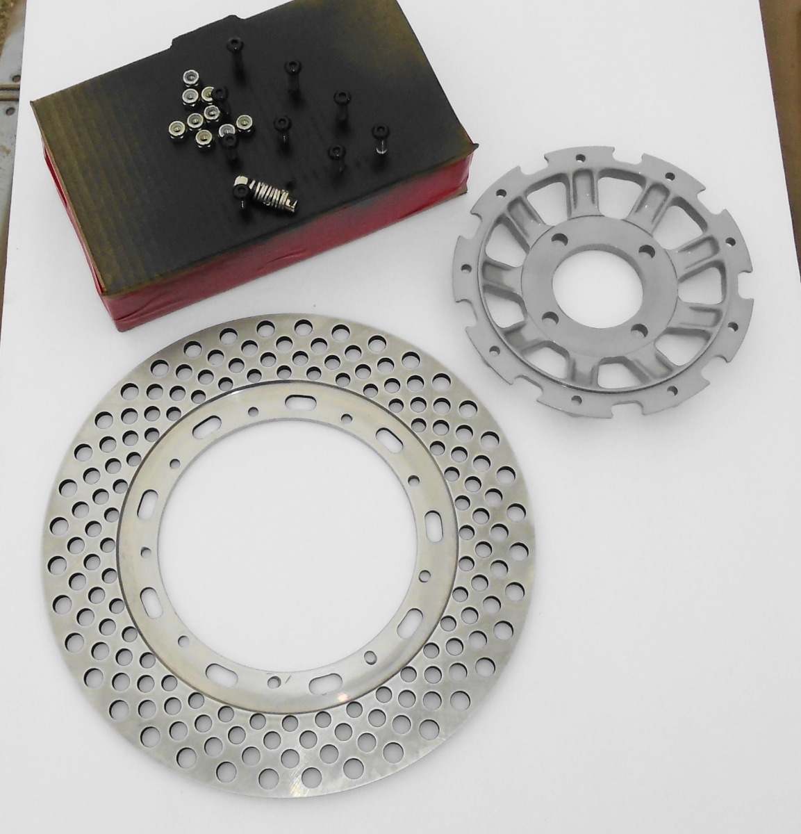 If you have access to a lathe you could always buy some disc blanks and make your own rotors, I've just done exactly that to get 320mm front rotors for my Z1300 front wheel, its a bit of work but can be done, I also drilled them in the Z1R pattern... Just as a matter of interest, My blanks were a tad over 320mm on outside diameter and had 50 mm centres, I removed the Z1300 carriers and used stainless steel button head bolts and stainless lock nuts to bolt the discs back onto the carriers, this is exactly how my mate {engineer} builds his discs for racing old Kawasaki's and Honda's.PS, the stainless discs are bloody hard so it takes a lot of time and care to do properly, it took me a few days to cut the disc , then drill the holes, twice on all 3 discs, Pilot holes first then the finish holes next, I used cobalt drill bits, I made a 250mm rear disc as well... I don't use smart phones so If I can get my camera to work I'll post pics of the new discs....