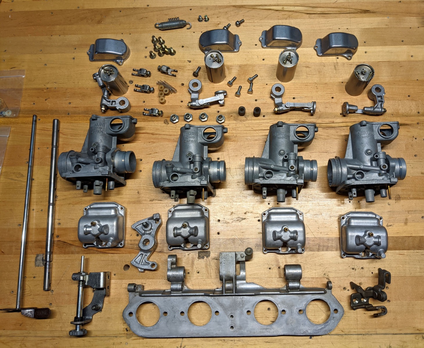 I also broke the carbs completely apart and cleaned everything. I've cleaned the ports and pieces many times, but this was the first time I went all the way. The final step was some time in an ultrasonic cleaner with aircraft ("Extreme") Simple Green. They came out nice. The only parts I polished were the top caps, with a bit of Mothers and a cloth.