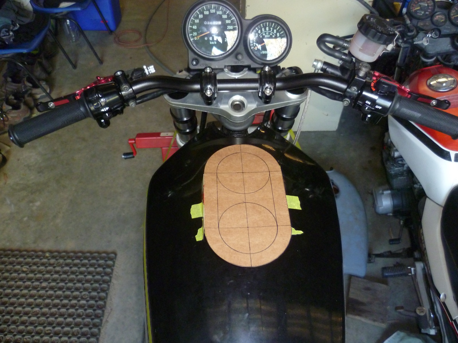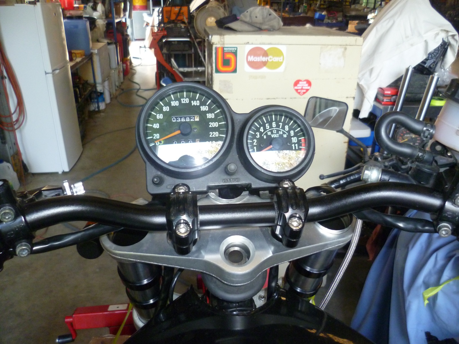 Well I finally got a chance to do a bit on my bike. Started out mocking up the wheel house. I fitted the headlight properly, stuck some rags under the gauges just to see where I wanted them to sit, The triple clamps I'm using had 2 threaded holes that lined up with the GPZ gauge mounts, so I trimmed the mounts to suit, drilled a couple of holes and they mounted straight up, I really think they suit the look of the bike. What do you think ? I'm also using early Z900 controls, they are small and neat...