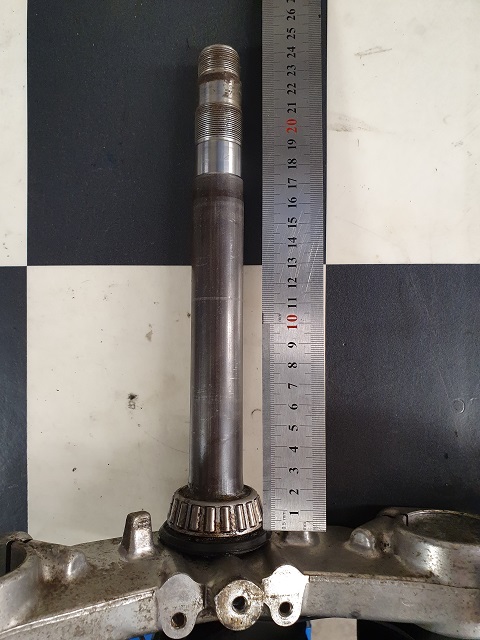 Unfortunately all that pressing had mushroomed the stem and it had to go up in the lathe to be touched up so the top yoke would fit.