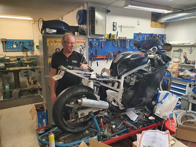 Mats had told me that he had some DFI parts to spear and I quickly offered a bottle of pure malt for the parts. Unfortunately it took until now before we could do the exchange as Mats is often away on the Moto GP circus. Time really flies when you get together with a soul mate with the genuine interest for the old eighties AMA style Superbikes.