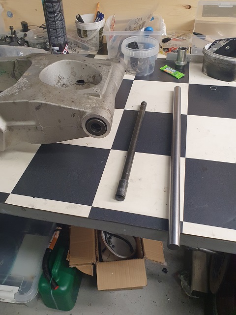 Then test fitted the axle on the bike without the swing arm and it was a nice fit. But when I tried to fit the swing arm and put the axle in it would not work. Now with a 3mm thicker axle it nudges the swing arm some mm forward until it hits the frame, just enough so the axle will not go through the frame.