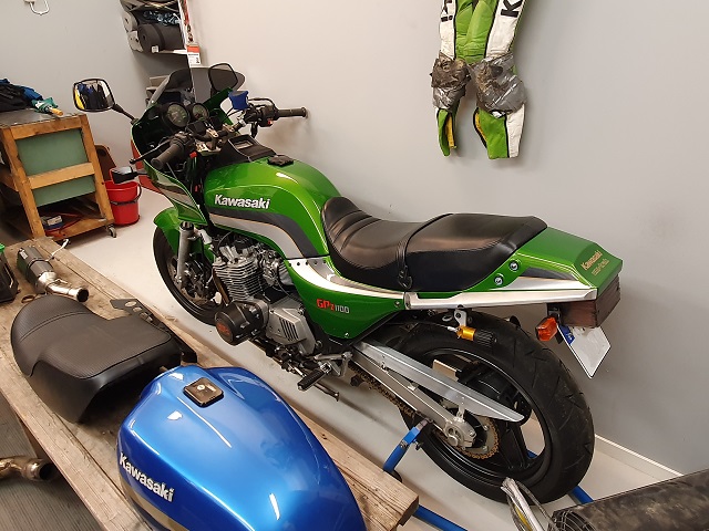 A few days before when I was cleaning up the new place I took a trip to go visit Mats (old suspension-Yoda in RR circles) that just this summer finalized his version of a Restro-modded GPZ1100 Unitrack.