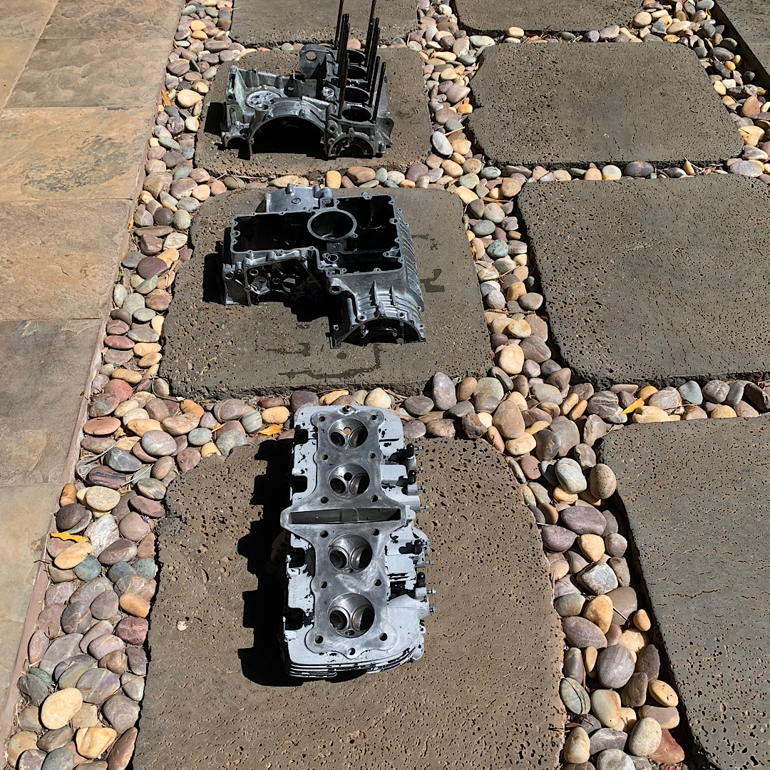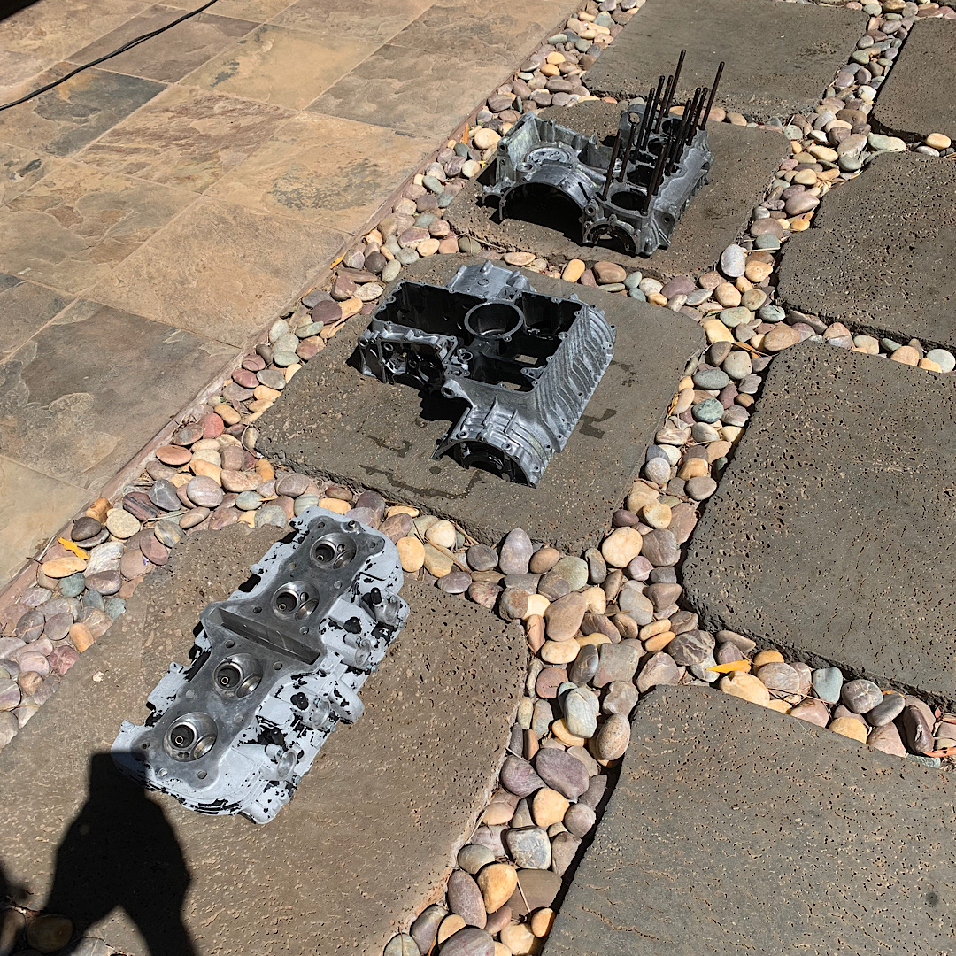 It's a lot of work vapor blasting motorcycle parts. There's the initial prep getting the oil, grease and paint off so you can actually GET to the vapor blasting. You don't want oil and grease floating around in your vapor blaster and fine blasting media isn't very good at removing paint. Then the fun part of blasting and making sure you get every nook and crany and that alone can be quite time consuming. Even with fine media you have to be careful with air pressure and how close you get the blast gun to certain areas such as sealing surfaces. Once your finished with the actual blasting then you have to clean the part and that is where you need a dip tank, running water, a good air compressor and a lot of patience. Once the part dries out any remaining media will be difficult to extract after it hardens. In this instance cleanliness is next to Godliness. While vapor blasting can make cleaning much easier, it certainly isn't as easy as some may think it is. Large engine parts can take several hours of work for just one piece. In my case I practiced on scrap and donated parts until I got to the point I became comfortable doing the process. If I was doing it professionally I would have at least three vapor blasting machines. One small one for small parts and two large ones with different media in them. Changing the media for different effects is very time consuming with just one machine, but done correctly vapor blasted parts look fantastic!