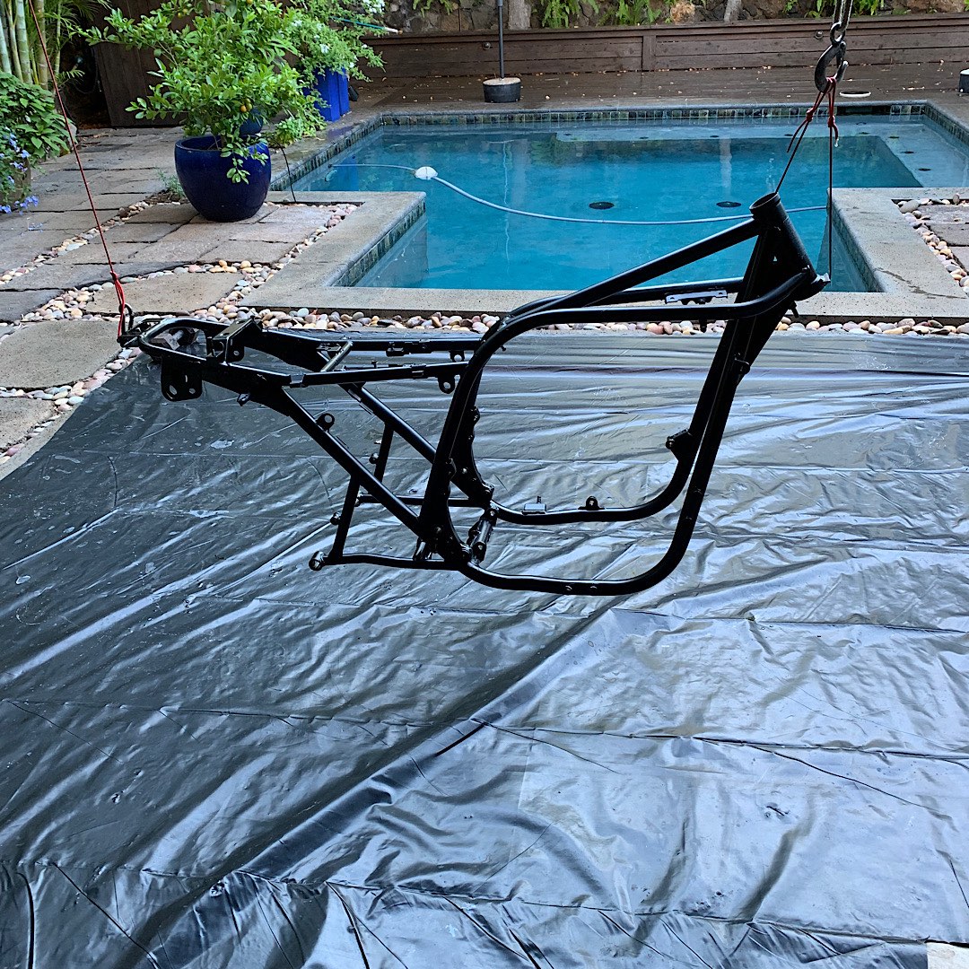 Frame is painted. Looking at other parts, found a stiff link in the cam chain, I will surely replace it as well as a few parts of the tensioner. Most were renewed in 2009 and don't have much miles. The support shafts are the modified type with small cutaways but I think one is not renewed.