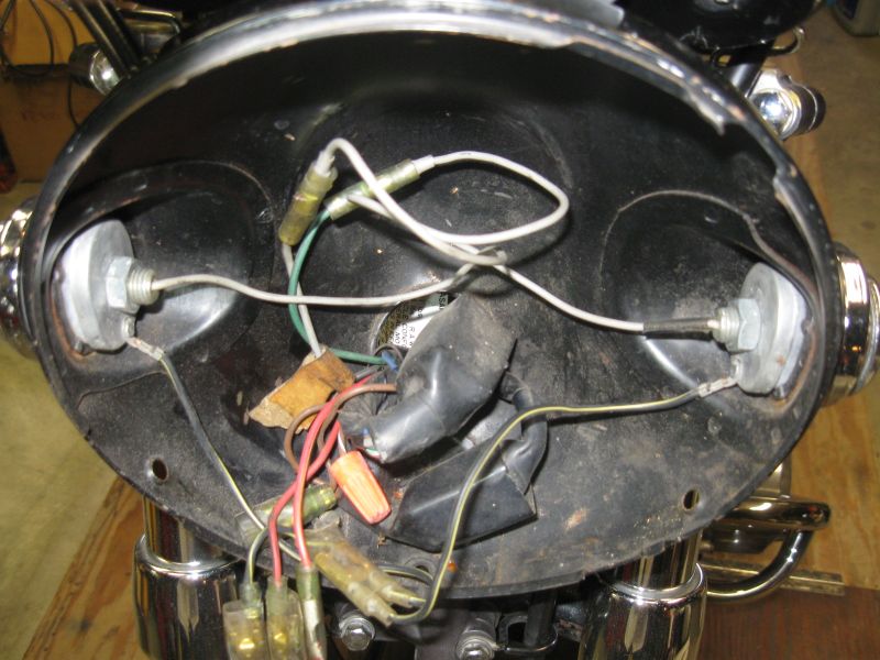 11 Dec 2021 12:41The orange wire nut is capping off the BR/W European 'city light' wire that's unused on U.S.-spec Z1's. The lower small pin connector is from the guage cluster. The large pin connector is from the main harness. The three headlight wires disappear from the pic at the bottom. The headlight is resting on the front fender.Does anyone have a photo of how the wiring harness gets bunched up around the headlamp? Is it all inside the can? It’s a lot of stuff and of course I didn’t adequately photograph it when I took it apart. I never take enough photos.