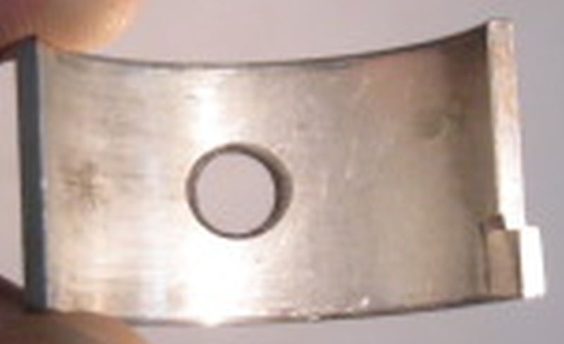 It's difficult to tell with debris in the oil holes, but the oil holes look smaller than those in OEM bushings to our calibrated eyeballs. An OEM cam bushing is pictured below. The hole measures 4.88mm (0.192 in.) dia. Note the chamfer surrounding the hole. The rear of the hole in the steel shell is also chamfered. The bushing measures 1.52mm (0.057 in.) thick. The distance between the edge of the hole and the edge of the bushing on either side is ~5.43mm (0.214 in.) All measurements done with a digital caliper.