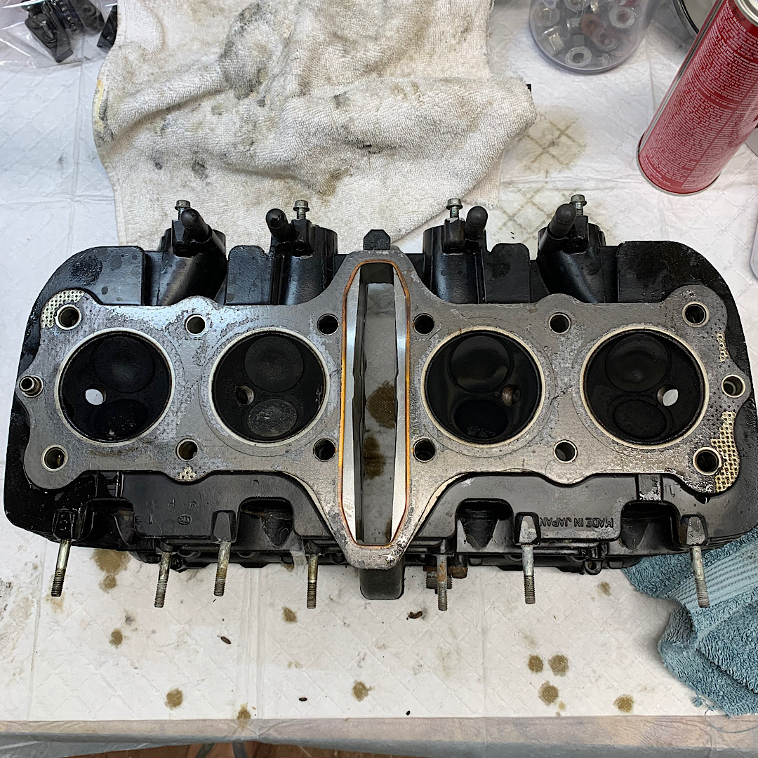 so, the head and cylinders are off. Pistons (.5 over) look perfect. The cam chain gear looks a little worn, cam bearings will be renewed. The cylinders still have some hone marks. Next I’ll remove the engine from the frame so it can go to media blast. I’ll empty the engine cases so I can get that ugly paint off. The paint is the tough part, cleaning the fins will be a task. Modern paint stripper sure doesn’t work like the bad old days.