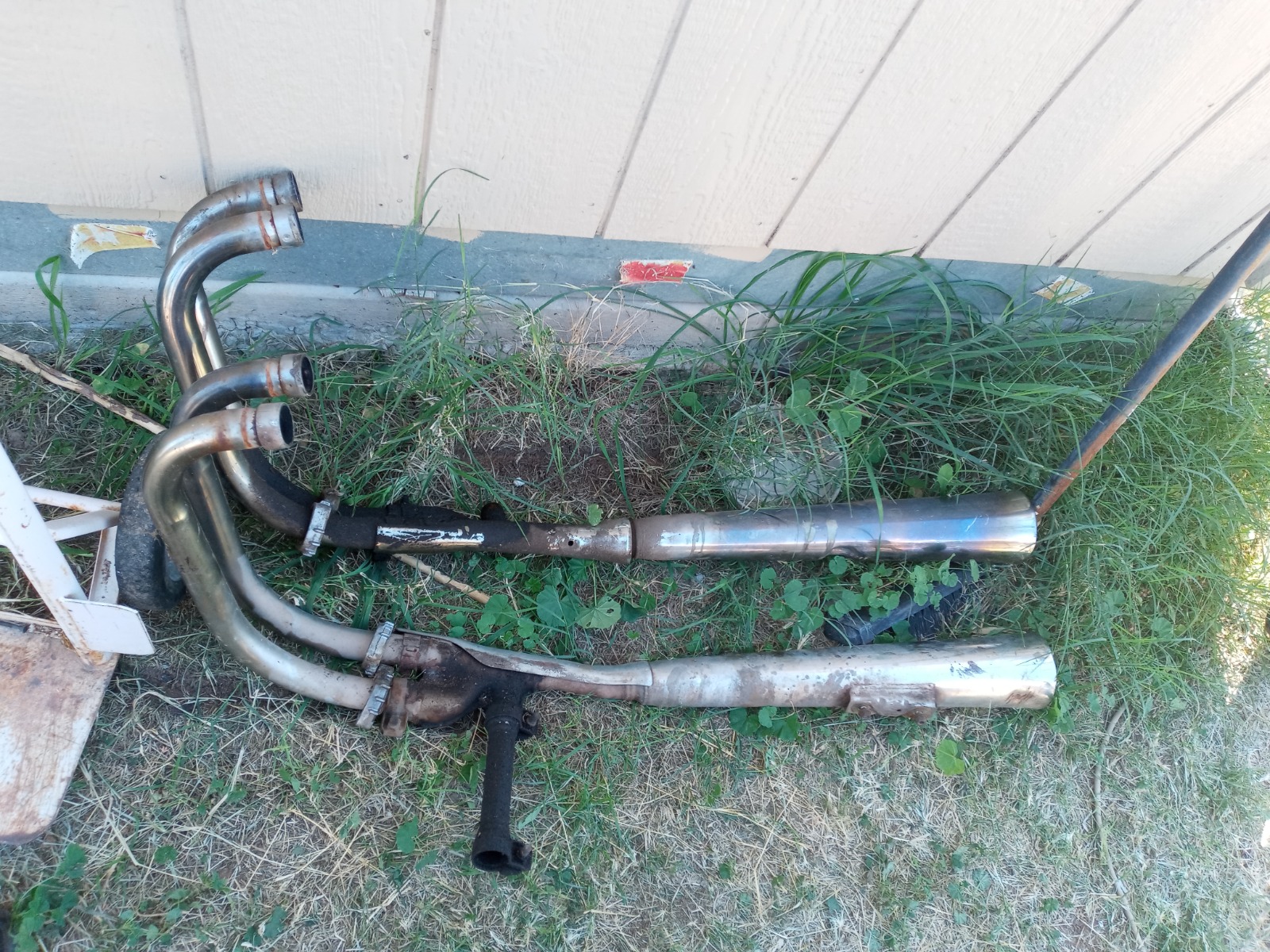 Well the day was warm and clear and nothing planned. Sounded like a perfect day for wrenching. Out comes the sockets and ratchets and the wrenches. The origninal project (KZ/GPz hybrid) got new tires last January, so the plan was to use them on this 750H. Yes the rear tire is a 16" on the H and 18" on the Hybrid. I measured and there is a 2 inch difference in height. I figure the taller wheel might make the H a better highway bike. I'll see when she is on the road. I got the rear tire installed with no problem. Used the same spacers. It was a direct bolt in. Last night I swapped in the rear fender from the parts frame(a '81 650 H). Another direct bolt in. Preety much the 650 H got spoked wheels and rear drum and 1 front disc. The 750 got triple discs and mag wheels.I don't know about the dash or electrics/electronics, but I susplect they would be very similar.Oh yeah the tanks are the same.How about some pics? The pic of the broken parts are of the removed parts that are not going back on. So far all the hardware had given me no problems during removal.