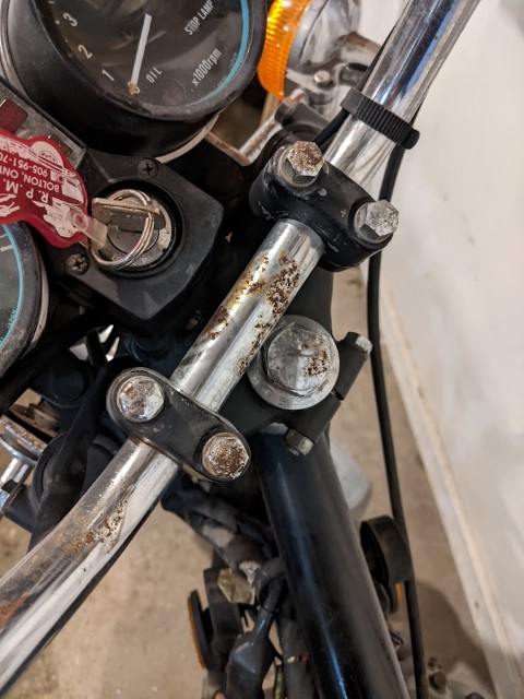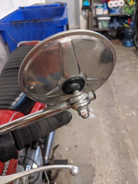 I've been looking on eBay for a over a month and the local chrome shop is 800km away. But I'll figure it out. I'm not about to paint any of the chrome because I'm a stickler for originality. Looking on the Kawasaki parts breakdown lists and diagrams, it doesn't show the grab bar on any of them. Might have been dealer installed options?? These mirrors can be cleaned and polished but I bought brand new OEM mirrors for the H1 I restored. I haven't been able to confirm if these were Kawasaki mirrors (as I've seen them on other 400/440's) or a dealer option?