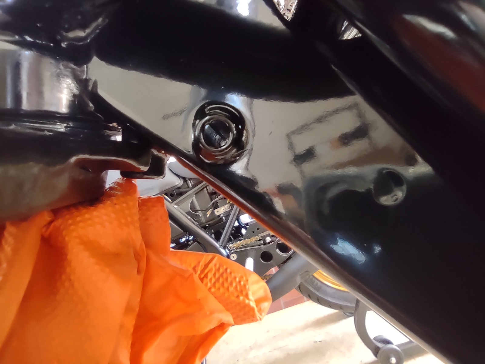 I'm pretty sure the headlight ear stack is all OK: rubber gasket, cap/washer for the gasket, chrome covers, headlight ear, cap/washer for the ear.