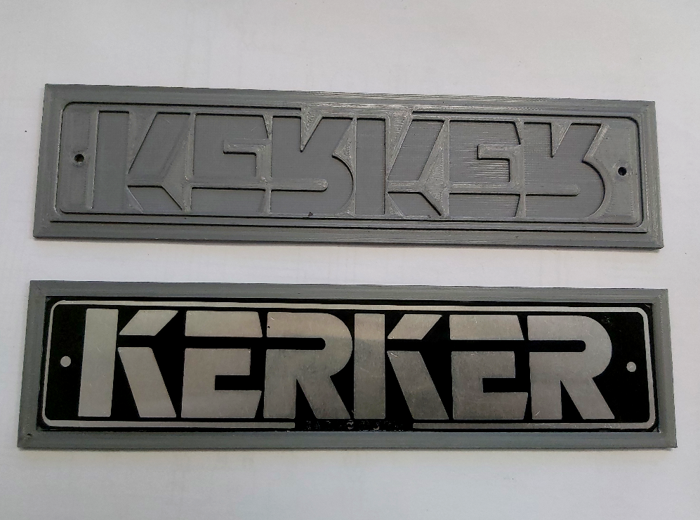 I had a local decal company cut a "mask" from "peel and stick" vinyl so that I could spray paint the black areas of the badge, which, when the mask is removed, would leave the shiny aluminium letters exposed...