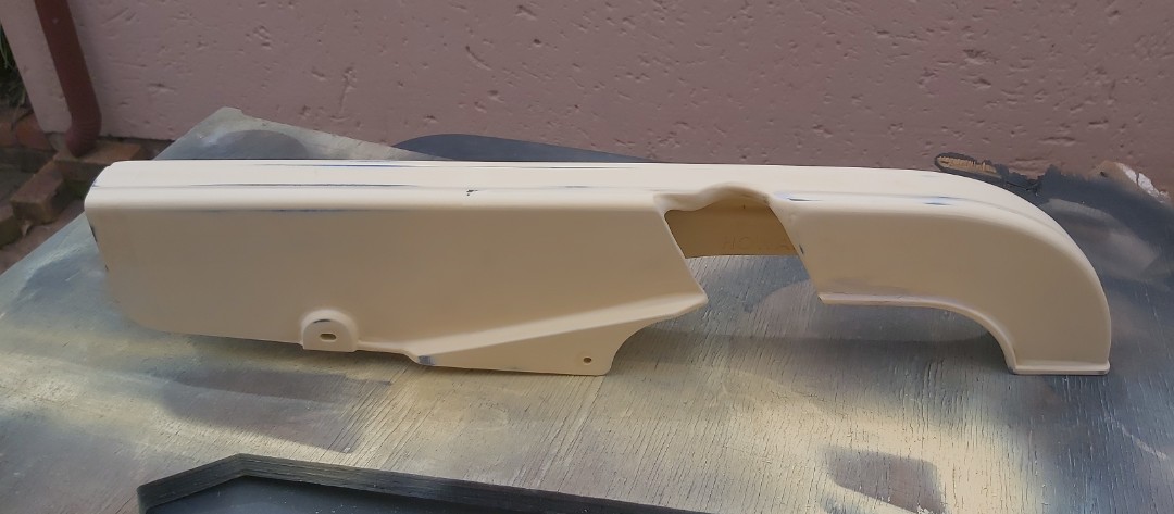 One of the 3 mounting lugs was broken off the cover, so I set about repairing it before repainting and applying the new 1100R decal.