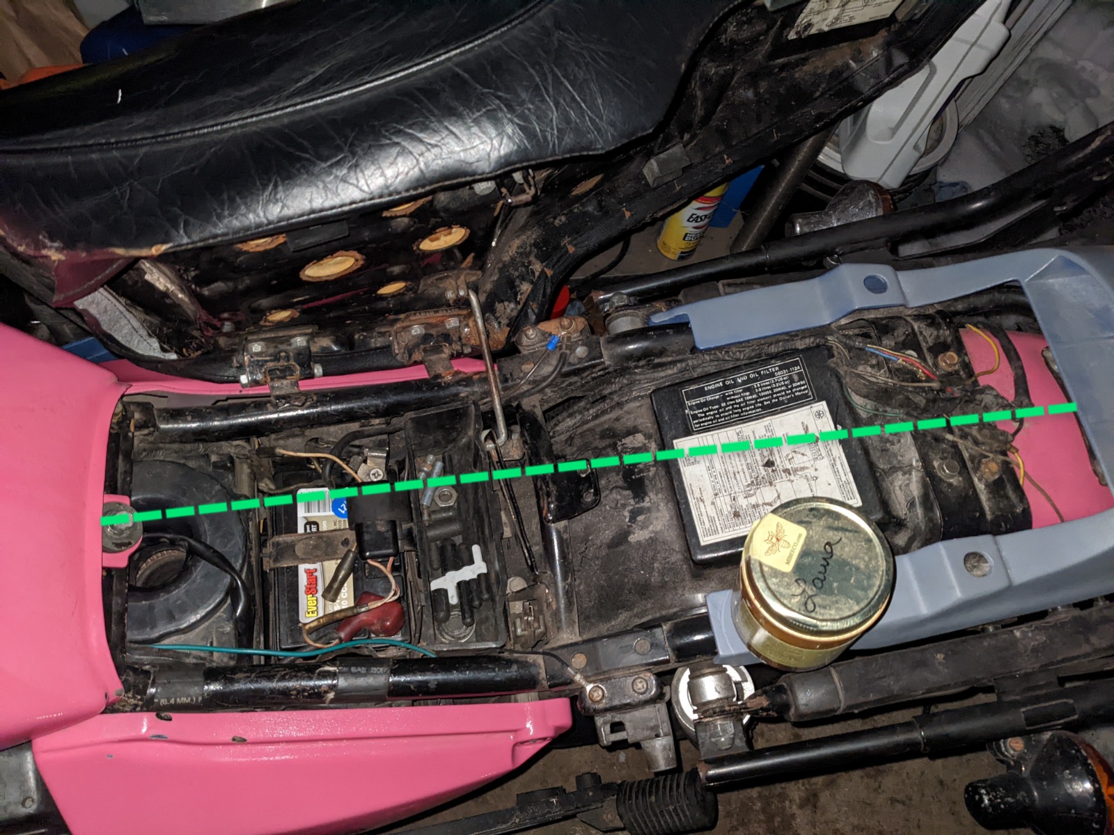 07 Feb 2022 16:53 - 07 Feb 2022 16:54Would any early big Z riders be kind enough to measure the distance of the dotted line on their bikes? The rear of the tank to the middle of the tailpiece. Where it sits on mine now - the most natural-feeling spot - is 60cm or a little under 23.75". It might be a pretty easy addition after all.