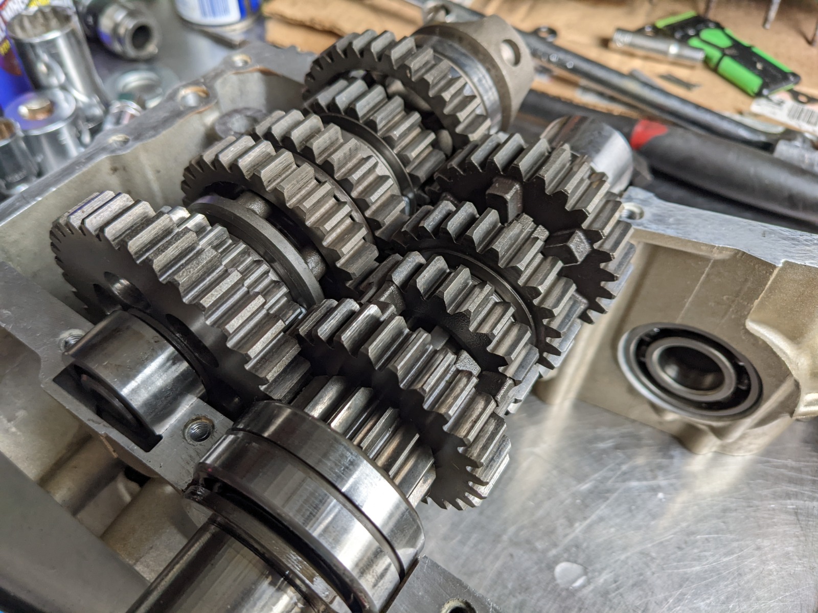That being said, I took a lot longer than I should have trying to get the halves together! It seems it's always a process I struggle with. In this event the issue was that I tightened down the shift drum too early and the transmission was about 2mm off.