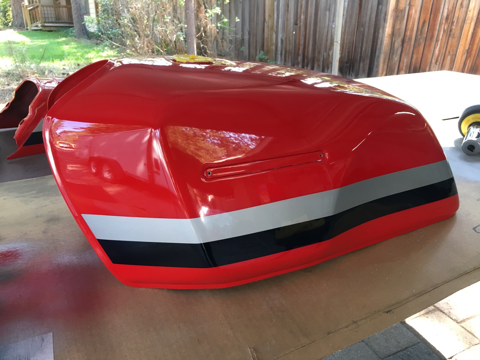 Ok, next, paint. Matching the firecracker red was a lil challenging, but it turned out nice I think. Patience in sanding is key to a good paint job.