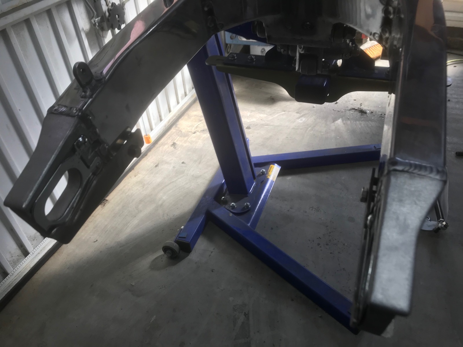 ) Next was assembling the rear end which went together nicely with no drama, the plating on the dog-bones came out nice. Still pushing forward the wheels are also in now, my "lazy old man who doesn't like struggling" wheel install brackets work nicely taking all the juggling out of installing the wheel with the spacers and calliper mount pre-assembled.