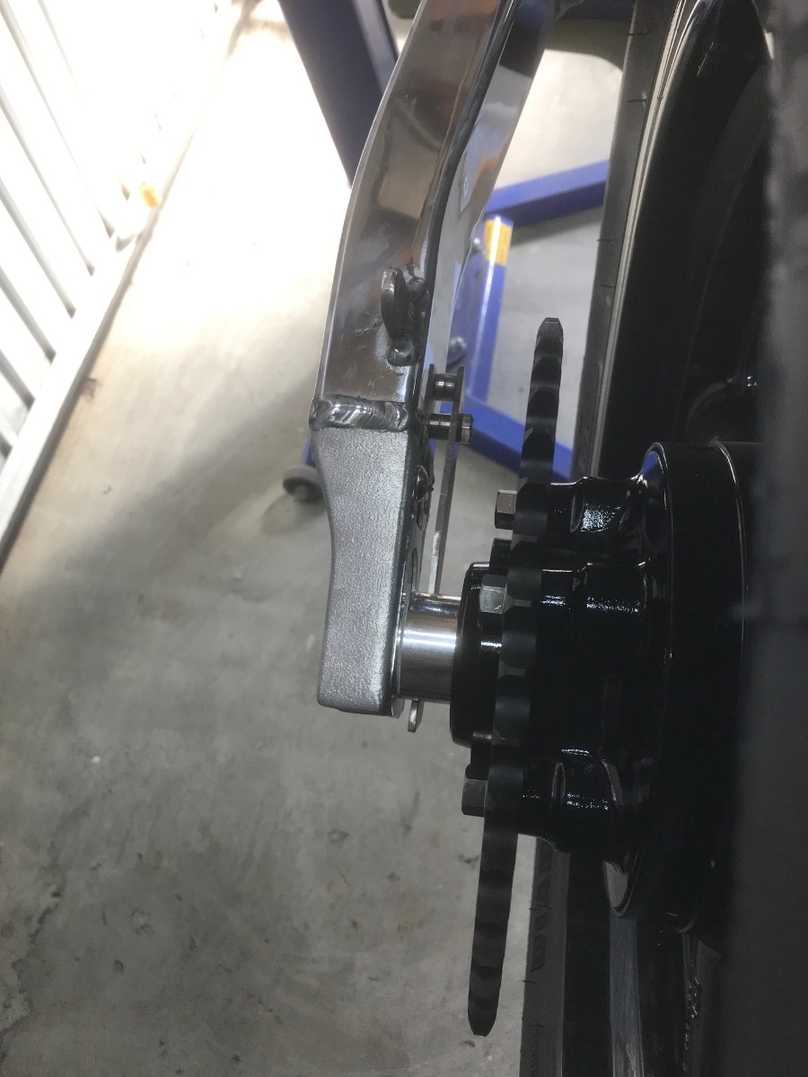 Well it's been a week of ups and downs but generally still making progress. Having cleaned up the GSXR swinger I wanted to use an OEM chain guide (I am still trying to use OEM where possible to achieve a "could of always been that way" look) So this presented the first conundrum !! the guide is made of rubber and needed to move inwards 11.5mm for it's new home, after a little head scratching I have "relieved" the back side to allow it to sit inwards the required amount but this then meant that none of the original mounts would work any more !! more head scratching, I cut the mounts off and fabbed new ones in 1.5mm sheet metal which are then bonded to the rubber. This now uses three of the original mounting points and two new ones