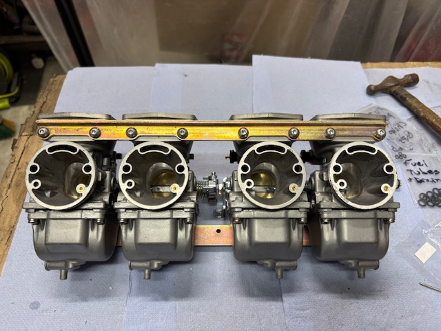 I managed to get these wrapped up today, fuel tubes shortened, Dynojet kit fitted, static sync done, float base settings done (will do clear tube before fitting). I also decided to make a mounting for the filter rather than having it flopping about on the hose. Still moving towards that light at the end of the tunnel