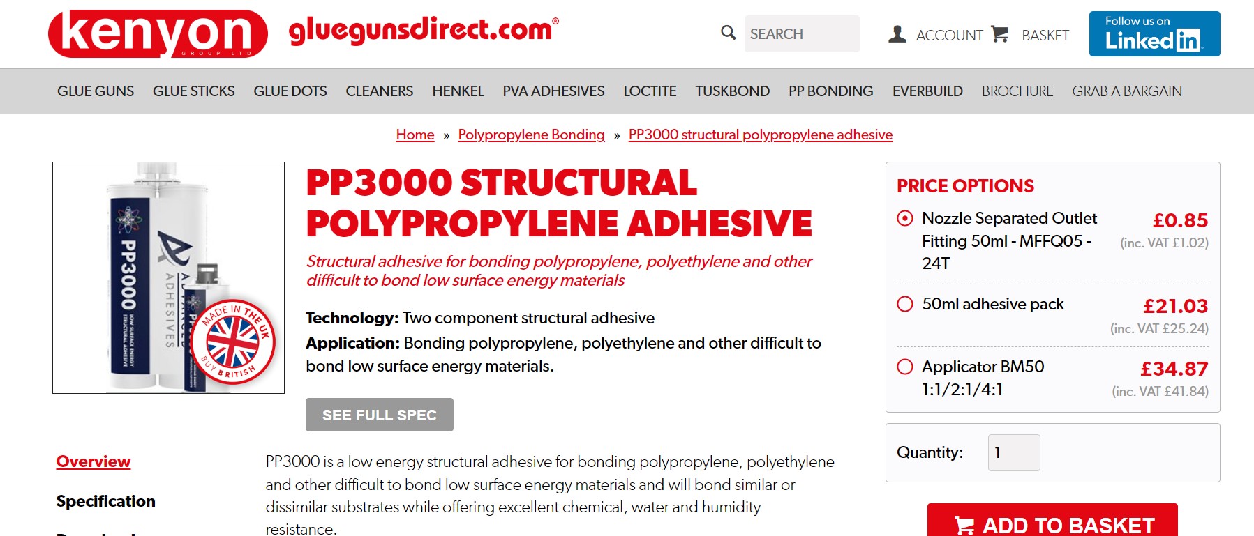15 Aug 2022 06:43The 3M product looks really good, I have however gone with the below which appears to be a very similar product from a UK firm. The adhesive is a similar price but when you factor in the applicator gun and nozzles etc the 3M works out about 40% more expensive. Hope "it does what it says on the tin"it appears the pan is "polypropylene"