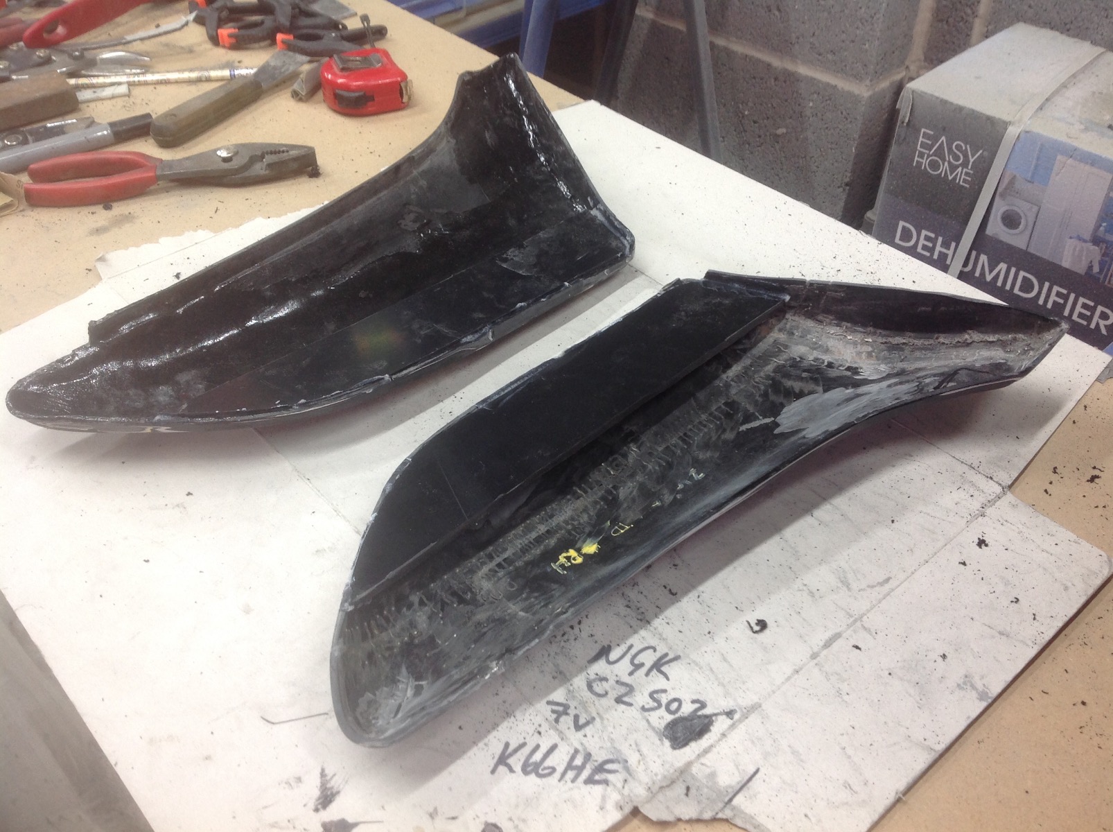 So today I started on the other side panel ( I Promise it will get more interesting soon) what a PITA that turned out to be, the first one wasn't too bad to do but the right hand side is an aftermarket panel which is a different plastic ( thicker, harder and not ABS) it reacts to heat differently, the curvatures are a little off and it resists the "hot rivets" to make the joins but we have got there in the end (I have left it for the glue to set now and will start sanding in the morning