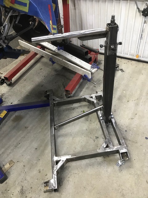) I have come up with what I hope is the answer to remove the motor with the bike bolted down to the lift and transport it to my engine stand (which I will convert to a rotisserie) In essence it will be a "screw jack" that will work in conjunction with my lift and engine stand - early doors yet put below is my progress so far