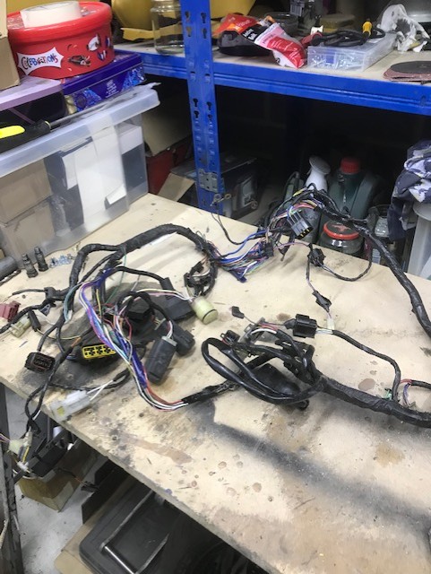 So now the holiday's over I have been back at it today, I decided that I should break the neighbours back in gently so the welding and grinding can wait until tomorrow. I will be making my own loom using DTM style connectors but I still needed factory plugs for the instruments, ignition module/pulse-coils and speed sensor. I picked up a ZX9R loom a while back that had been butchered so was dirt cheap (I only needed the 16 pin plug for the instruments and the 3 pin for the speed sensor) I am using a GPZ1100A2 ignition system but fortunately several other kawas of that era use the same type igniter so have the same plug (I bought a GPX600 loom for $20 as it doesn't carry the "classic" premium of a GPZ part but is the same 10 pin plug). Having stripped both looms today I have harvested the required parts and have enough cable of the correct colours that I shouldn't need to buy much in the way of cable to build the full loom, a good day