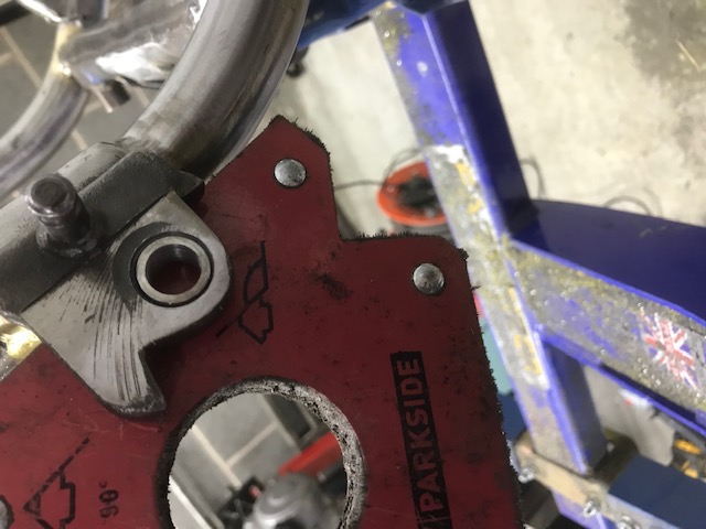 I put a couple of scallops in the cross tube on the frame for the wiring (originally the loom runs under this tube but now I have lifted the airbox it won't fit). The loom may of just fitted between the tube and the tank but I didn't want to find out it wouldn't fit after everything is painted and powder coated. Also as is common the mounting hole for the kick stand bolt was elongated so the bolt fitted "like a dick in a shirt sleeve" so I have sleeved it to be a much closer fit which has removed about 80% of the slop in the kick stand (the sleeve isn't a sloppy fit, I used a step drill to give the weld somewhere to go). Just need to sort a few brackets and the like and make some blanking plugs for the frame and it will be "off to the powder coater