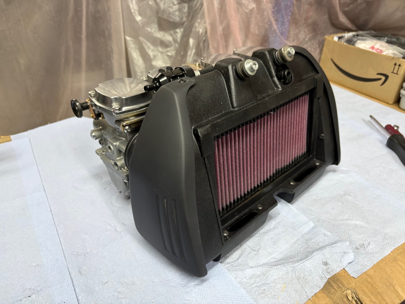 I managed to get these wrapped up today, fuel tubes shortened, Dynojet kit fitted, static sync done, float base settings done (will do clear tube before fitting). I also decided to make a mounting for the filter rather than having it flopping about on the hose. Still moving towards that light at the end of the tunnel