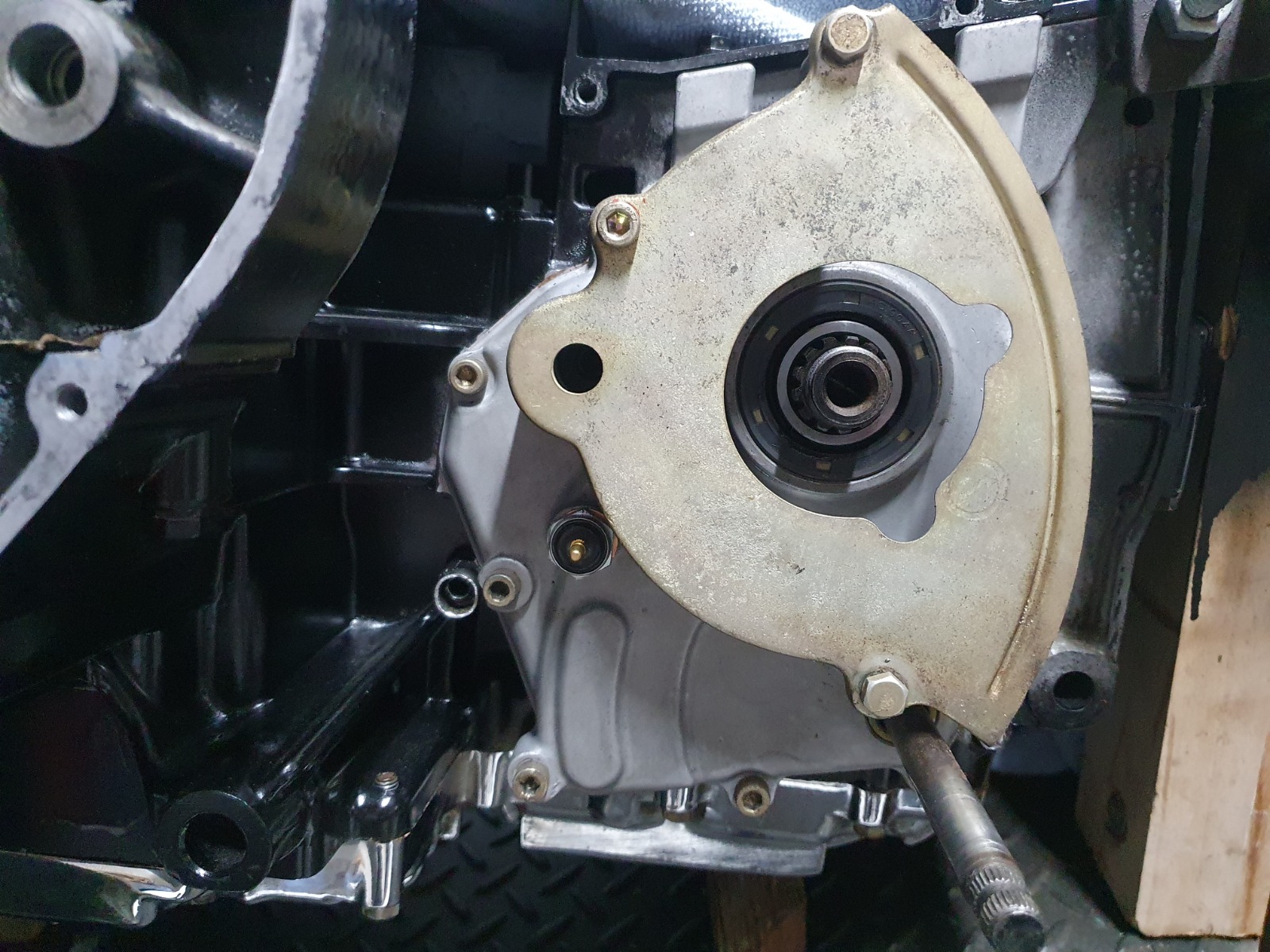 First up, the inner sprocket cover needs the 3 seals punched out and replaced with new ones, a clean up and sorting out some fasteners, then screwed on with a fresh gasket. The new neural switch gets bolted in too.