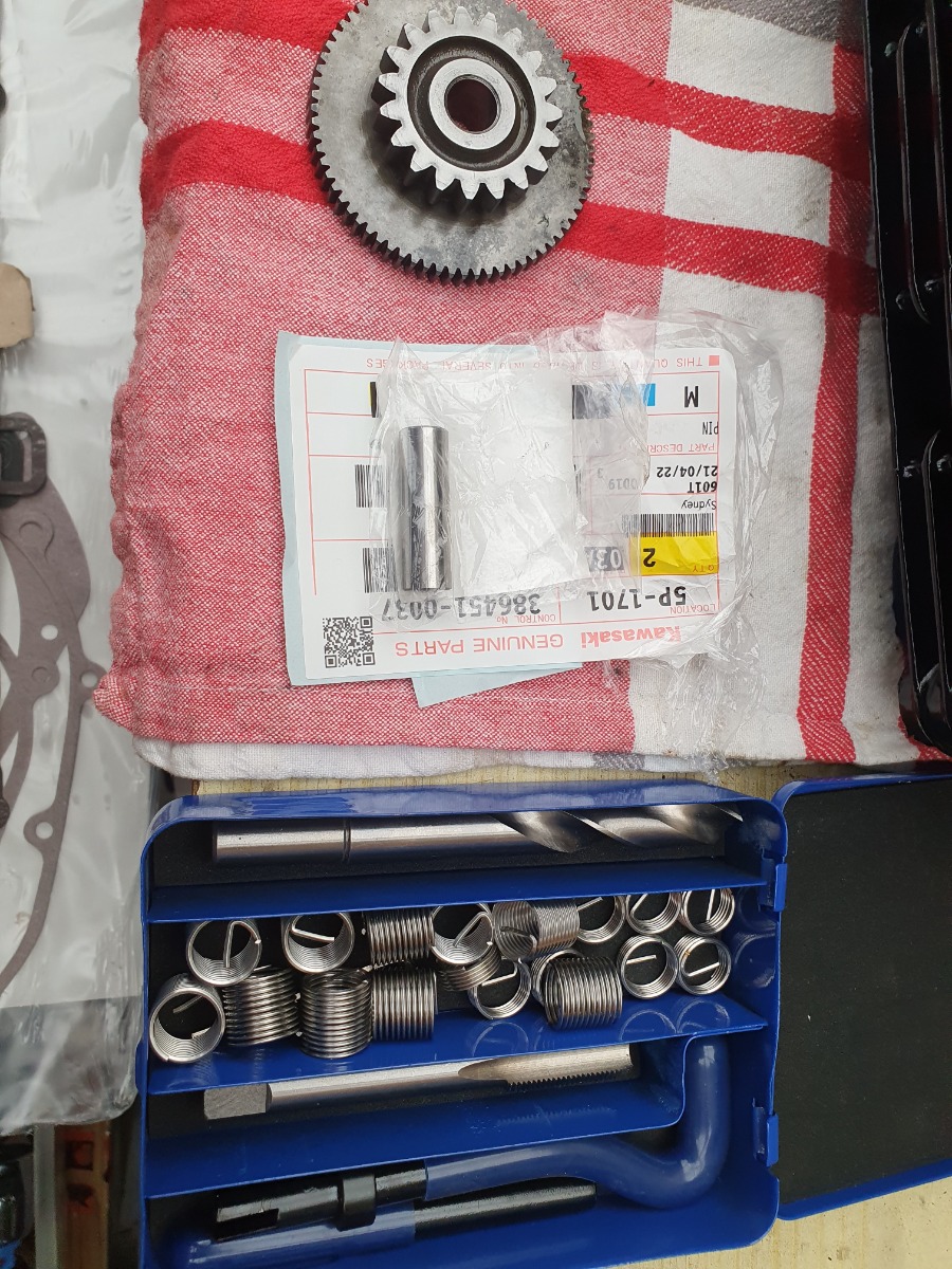 Anyhow, the helicoil fix should be next, and I picked up the starter gear pin from the Kwaka dealer so a working starter motor could be in this bikes future.