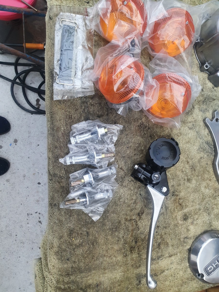 Got some more bits today, a new 5/8 master cylinder, a complete set of short stem indicators (or blinkers or whatever you want to call them !) and a oil tank strap.