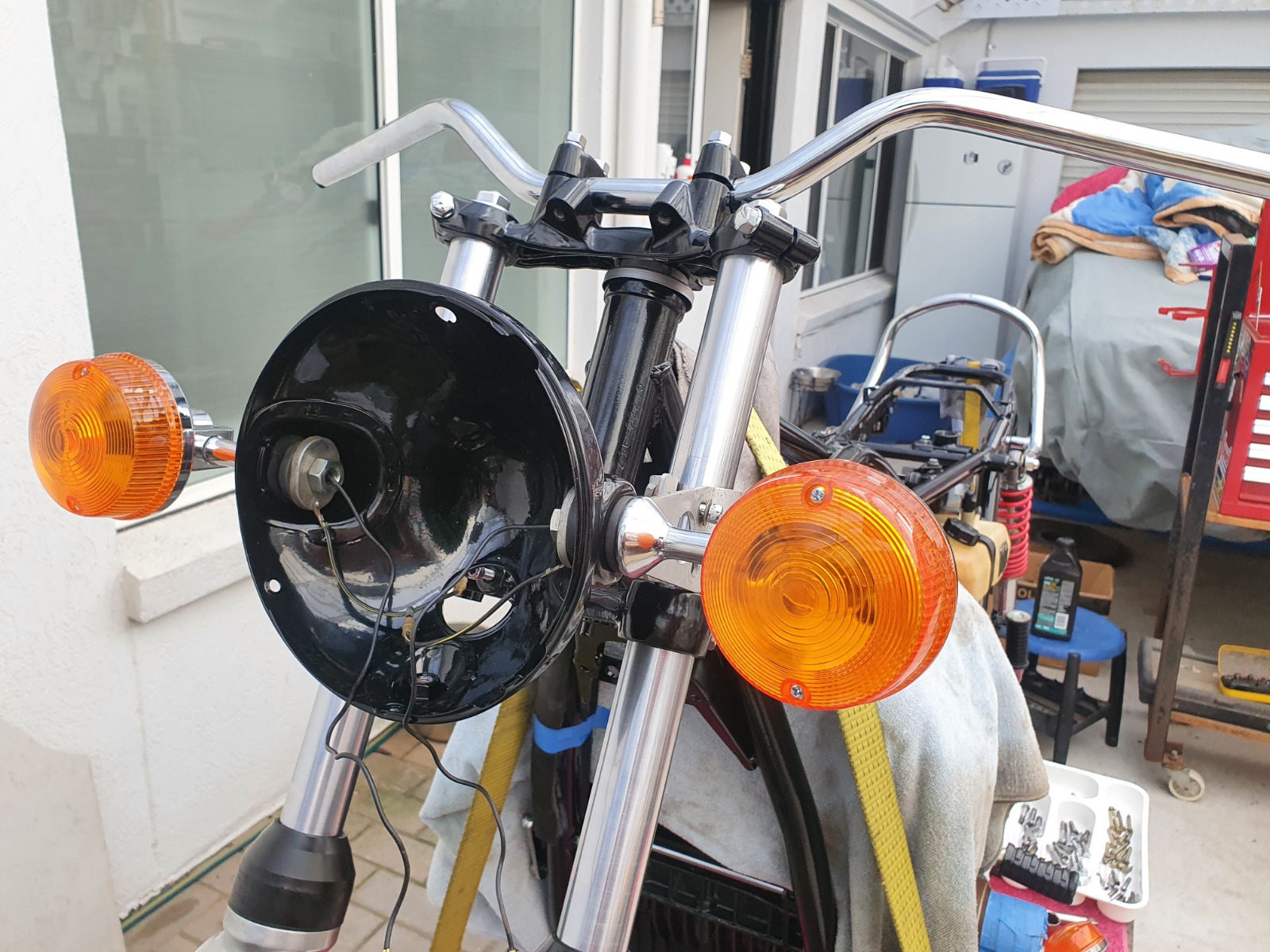 I couldnt resist the temptation to do a test fit of the indicators (or blinkers, or flashers or turn signals or whatever you call them