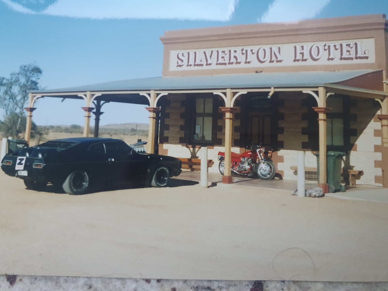 Here is Redzed at the Silverton Hotel next to the Mad Max replica Falcon coupe