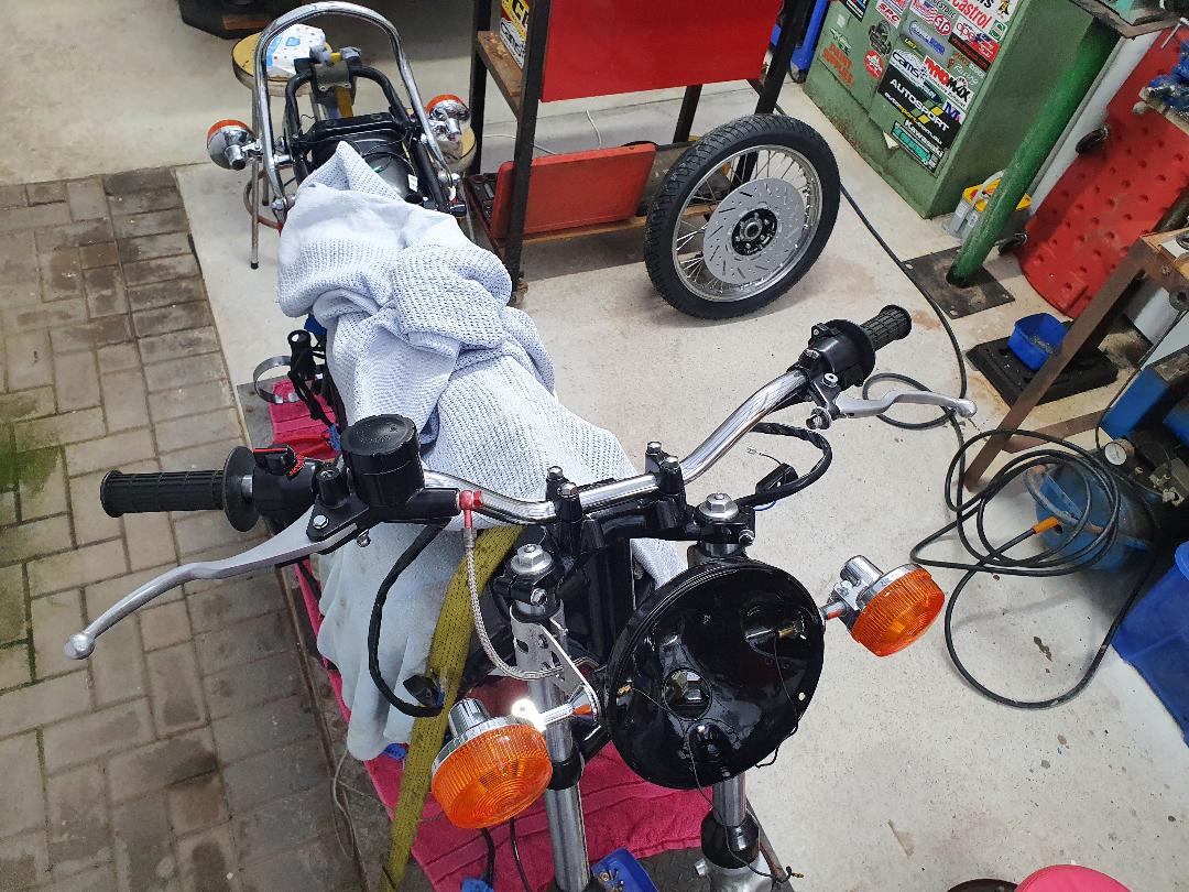 Im starting to fit up the handlebars and everything that hangs off them. Found a secondhand throttle tube on Ebay so I can replace the quick action single cable one.