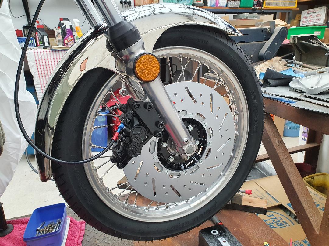 I did a test fit up with the Nissin 4 piston brake caliper just to make sure it fits and the wheel spins ok.