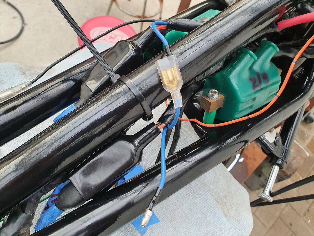 11 Oct 2022 01:25As far as I am aware the "double" brown is an accessory feed (not used) so the single brown will be the feed, the other side of the horn goes to the black wire from the switch (the switch is in the earth side) which then earths through the handlebar when the button is pushedNow another electrical question - I think i have found most connections now.