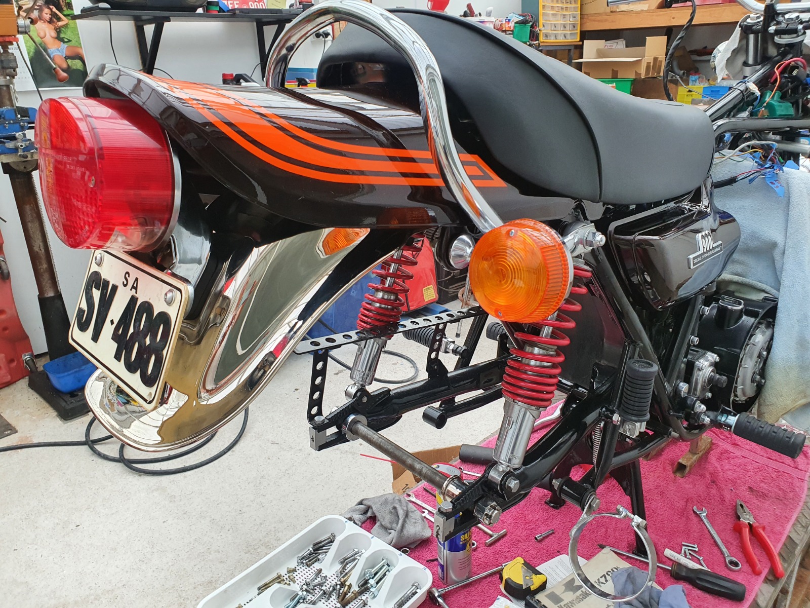 I attached the rear taillight onto the rear mudguard, cleaned up bushes and bolts and fitted the guard and hooked up the wiring.