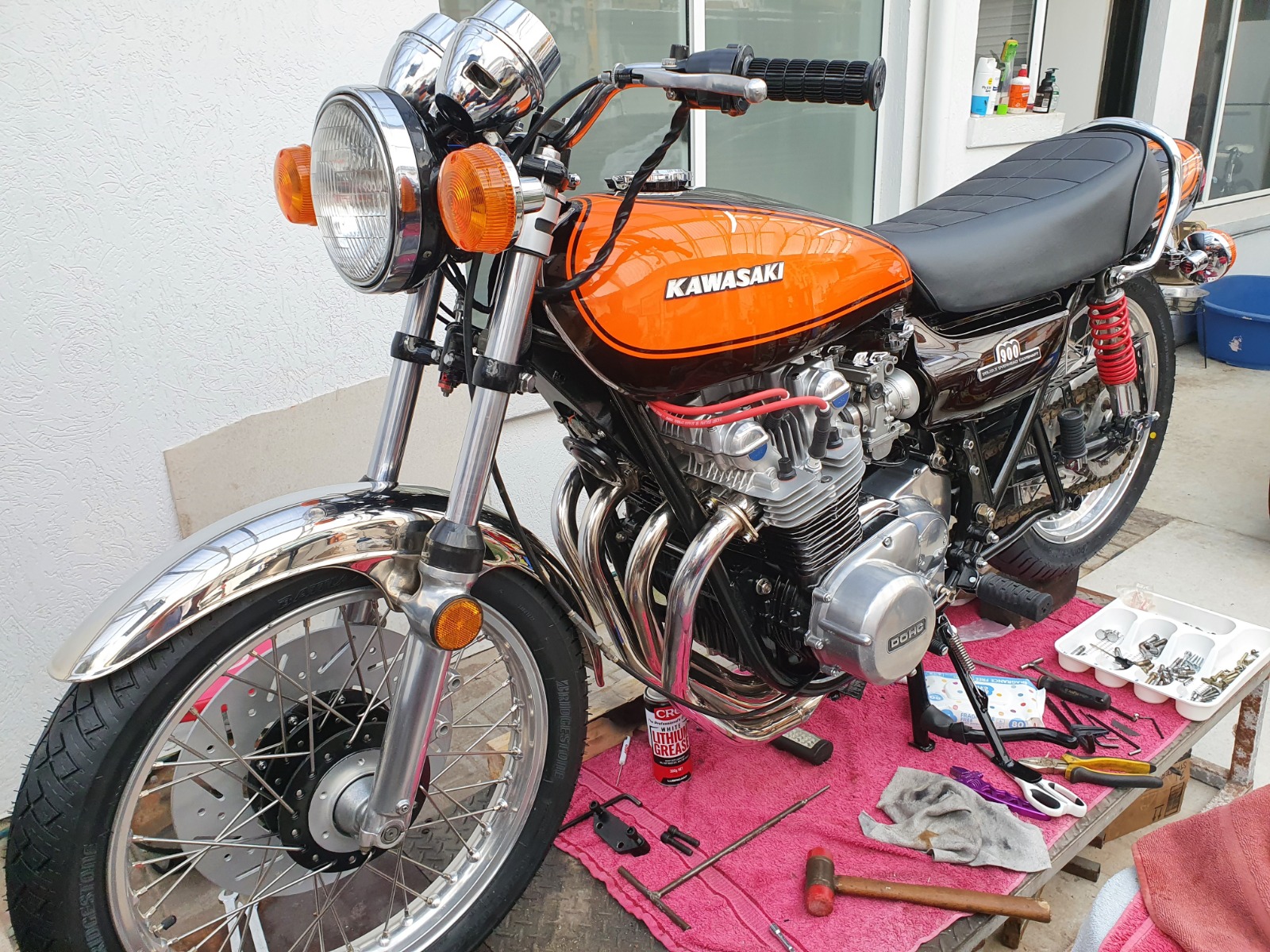 Now the plan has been to try and make an upcoming bike show that will feature a 50th Anniversary display by the Z owners club that is on this Sunday. It didnt matter if it wasnt running, just want it to be "together". So far so good.