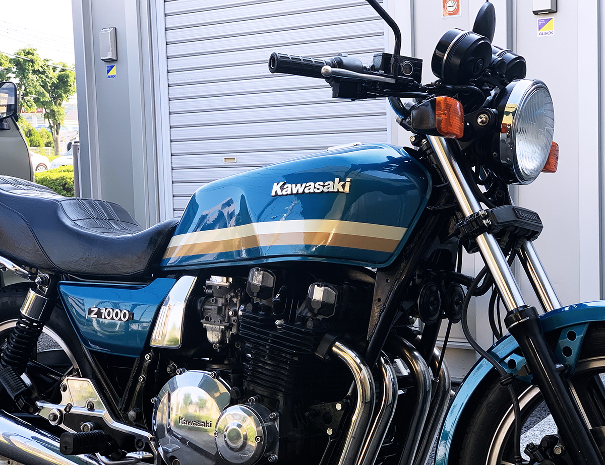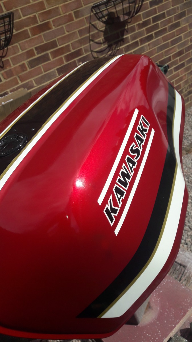 I googled around looking for different paint jobs and found this picture of a blue -J. I really like the color (and the bike), I think it would complement my green Z900 as well:
