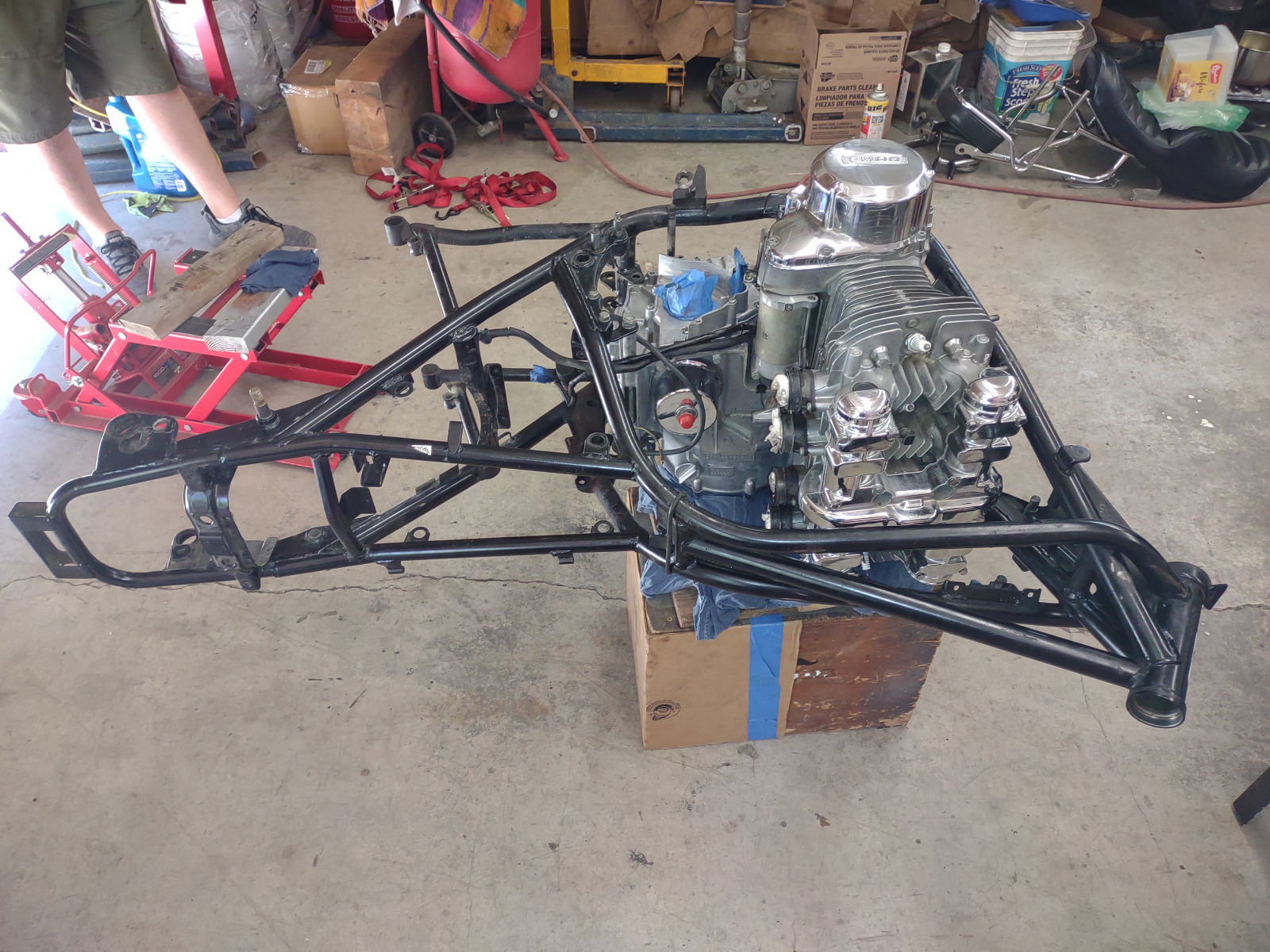 Well after 3 rounds of cleaning the motor is starting to look like it is made from aluminum and not 45yo baked on grease and oil. I figure it will take another 3 or 4 rounds of cleaning to get it looking even close to good enough.Still waiting for the blast media to blast the frame. Everything else fits in the blast cabinet including the swingarm.