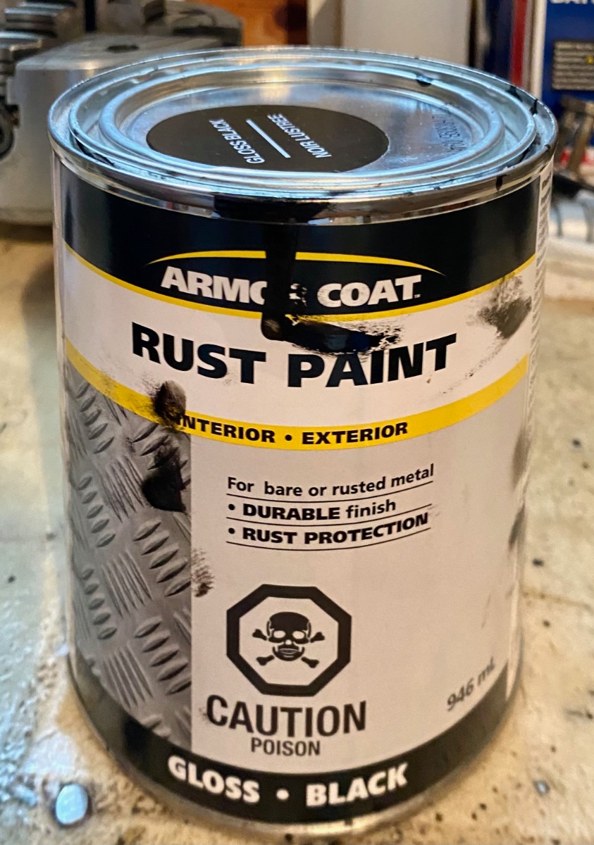 That Armor Coat gloss black paint goes on very well, even with a cheap brush, and levels very quickly. I can't spray as well as this paint goes on. But it does take more than 24 hours at room temperature to cure to the point of handling. And nearly a month for a complete cure.
