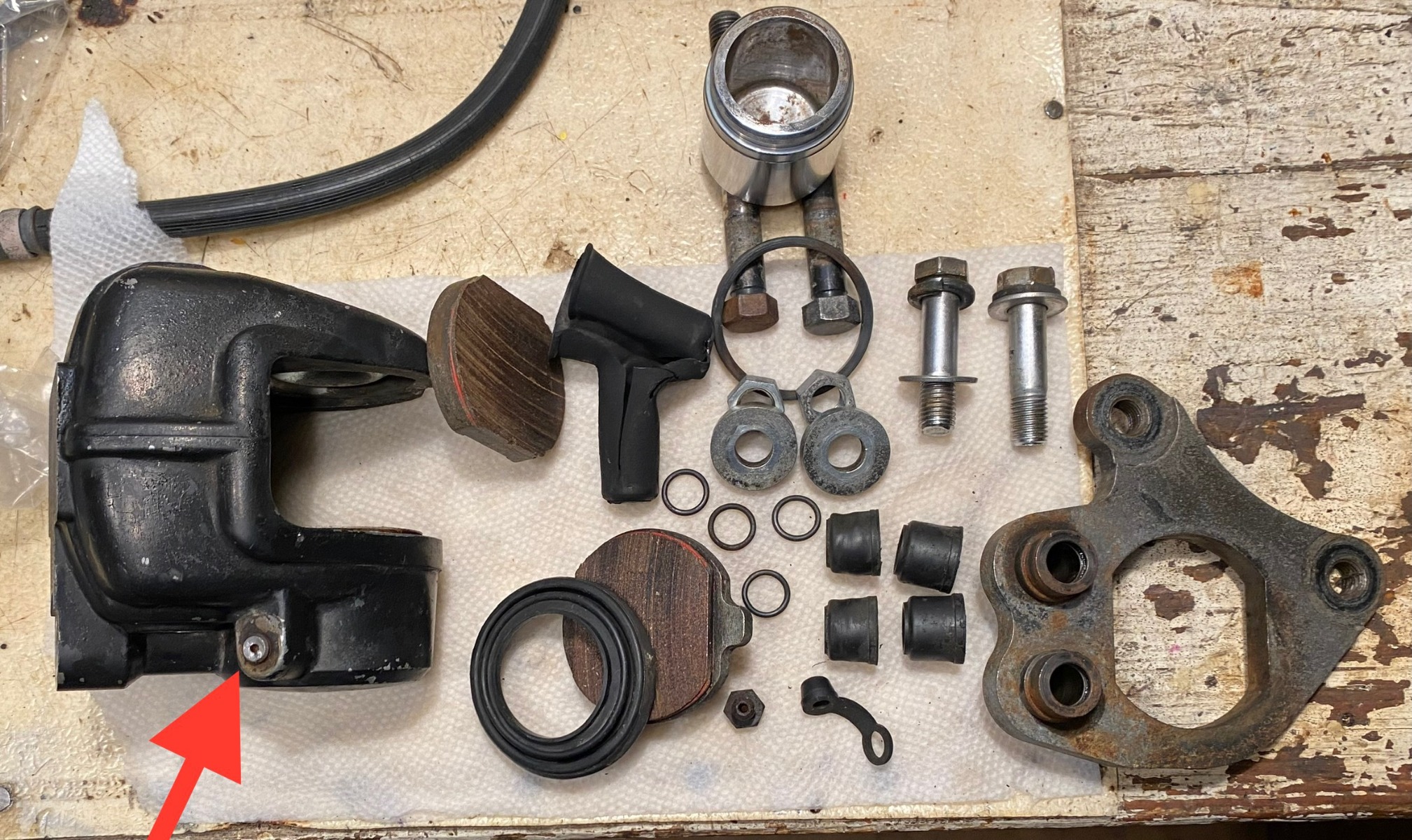 And I rebuilt the rear caliper and everything looked pretty good, so lots of cleaning but no new parts. With the exception of a bleeder valve repair insert which uses a 1/8" pipe thread brass insert. Hard to buy these now due to liability.