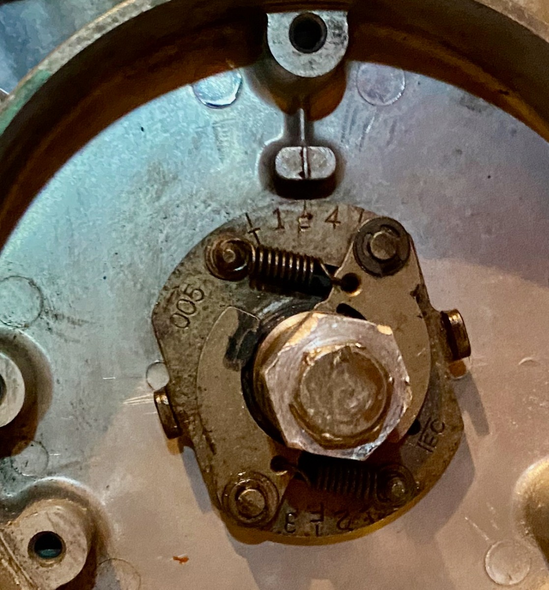 Then started fiddling until the left points (cyl 1,4) would open and wink out the test light (red arrow). Then the same for the right hand points (cyl 2,3).