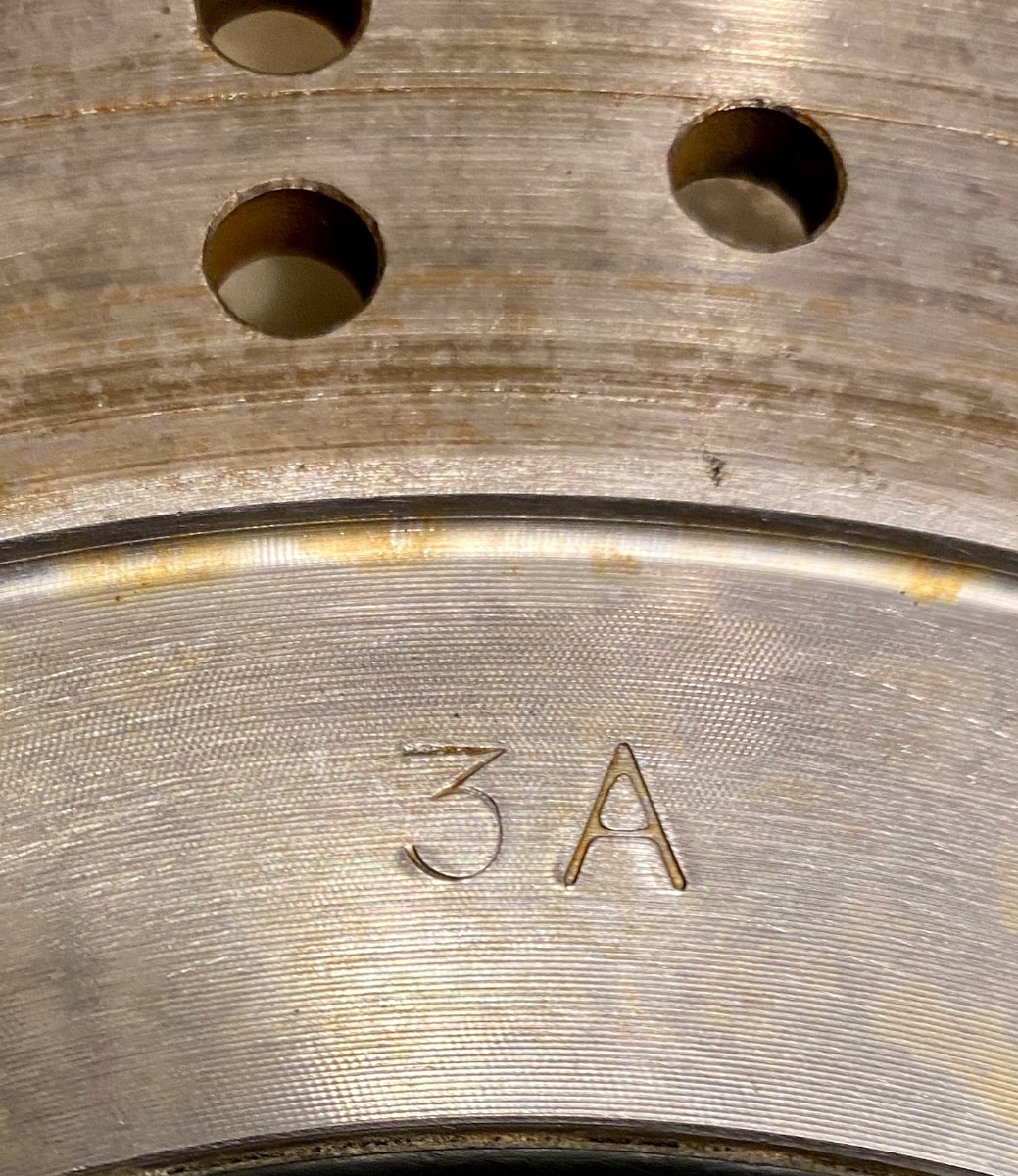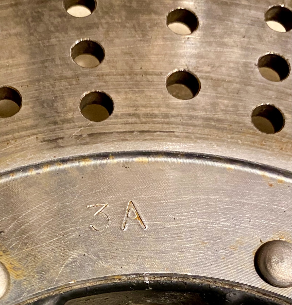 Both front discs have a 3A stamped one them. I have no idea how that translates into a date code.